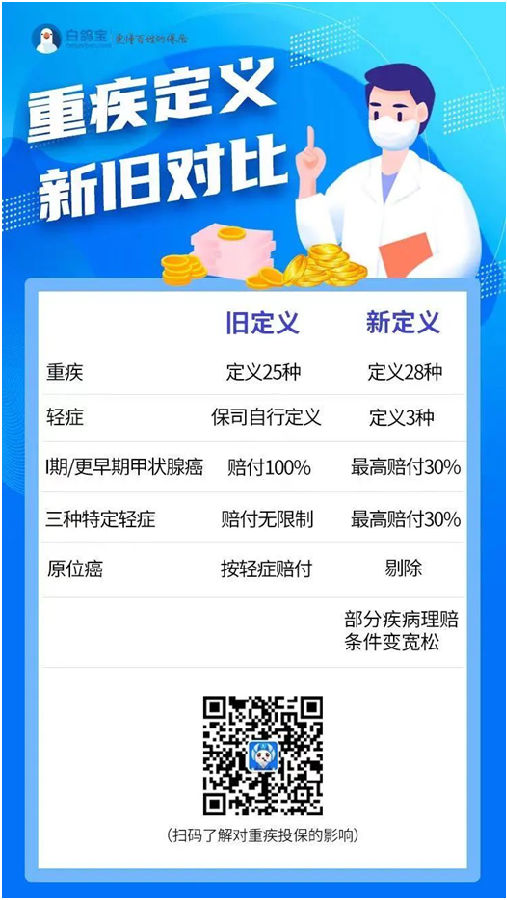 新旧重疾定义的区别,详见《白鸽说|重疾新定义发布》(链接)已经说得非常清晰了。