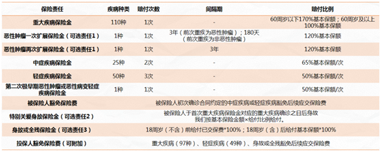 更有豁免保费功能,得了轻症或是中症,可以免去之后应交的保费,并且重疾保障继续有效。