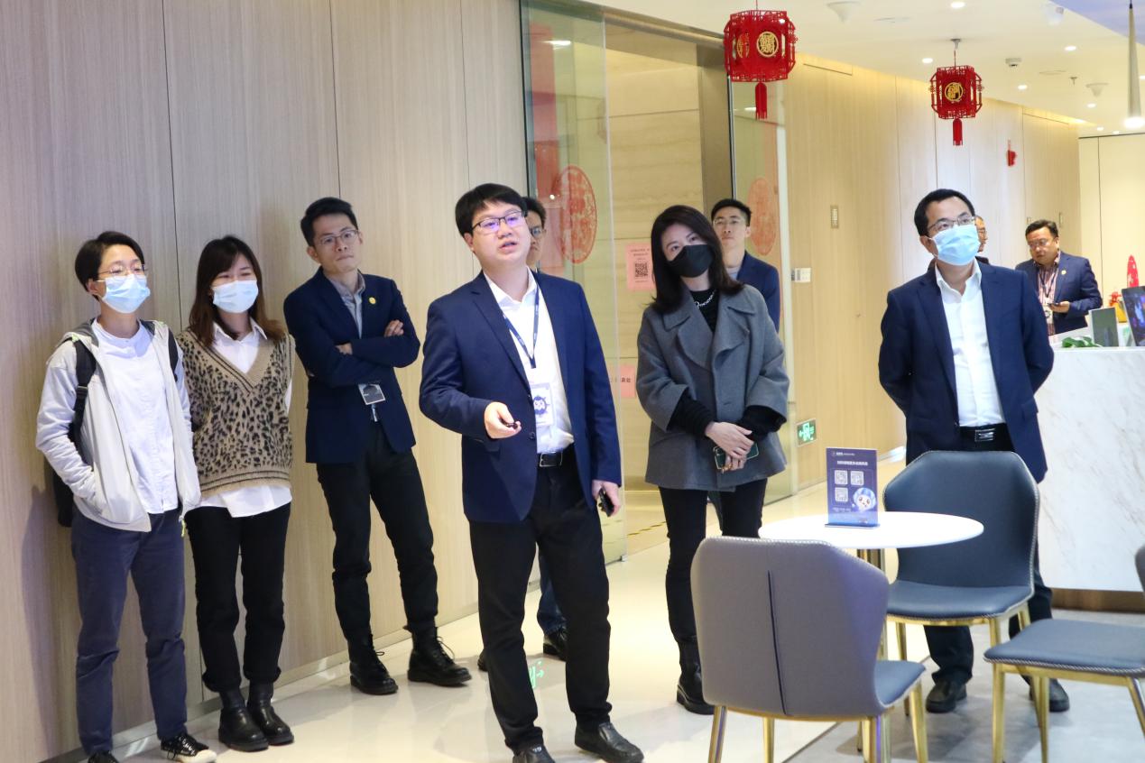 在白鸽在线高管引导及介绍下,黎邦林一行参观了白鸽在线职场环境,并对白鸽在线极具科技感的职场环境布局及充满活力的工作氛围表示认可及赞美。