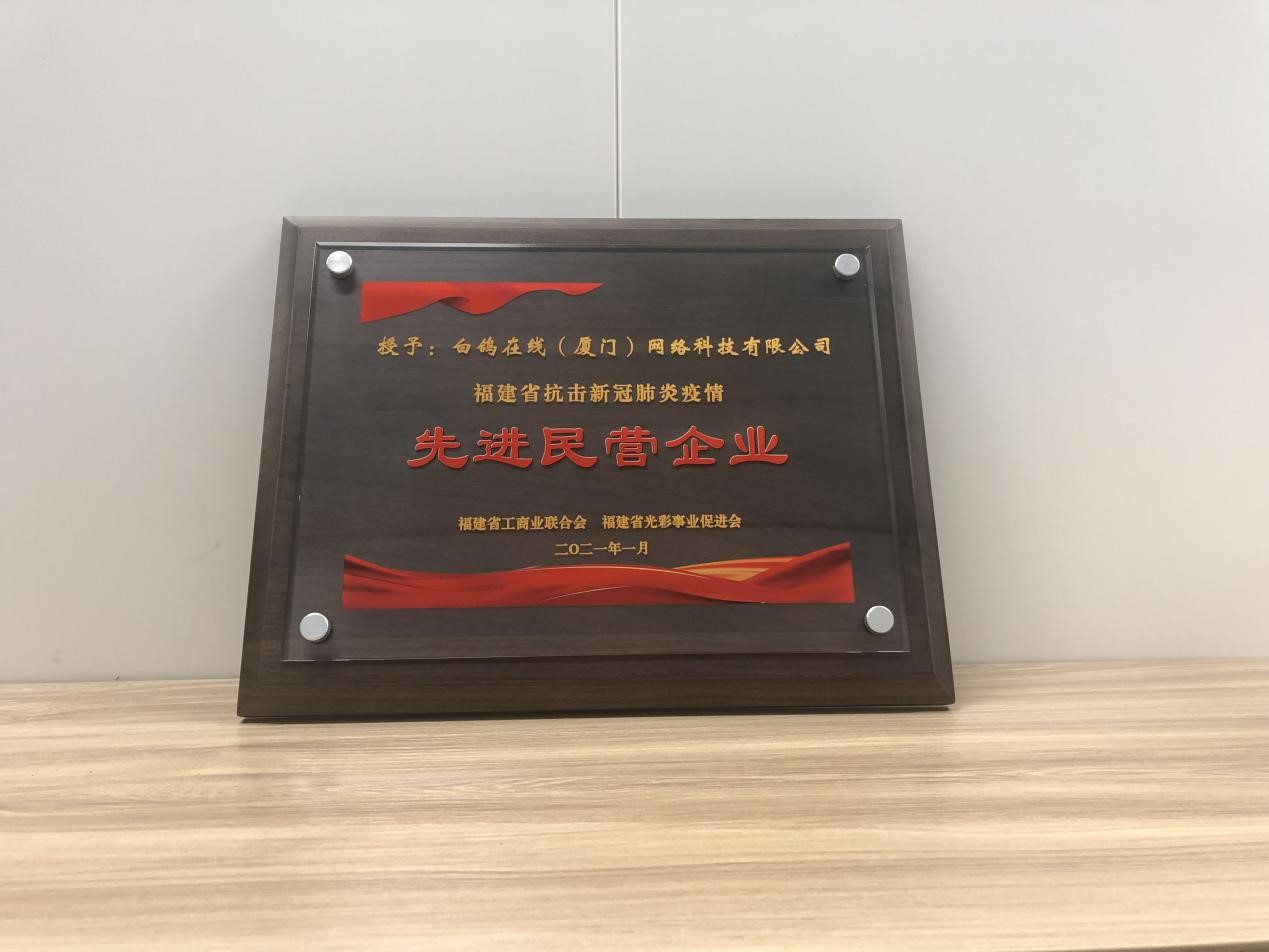 不惧时疫,亦敢为先丨白鸽在线荣获福建省抗击新冠肺炎疫情先进民营企业称号