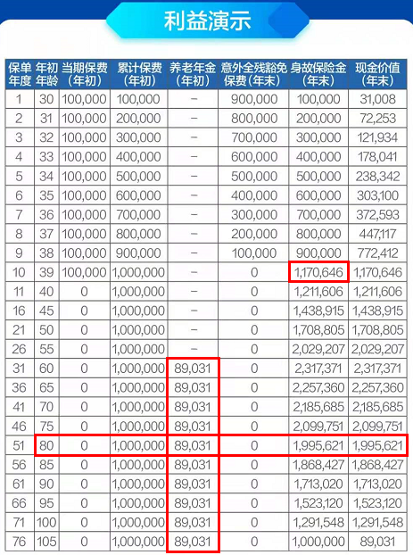 40岁的白先生年交10万元,交10年;