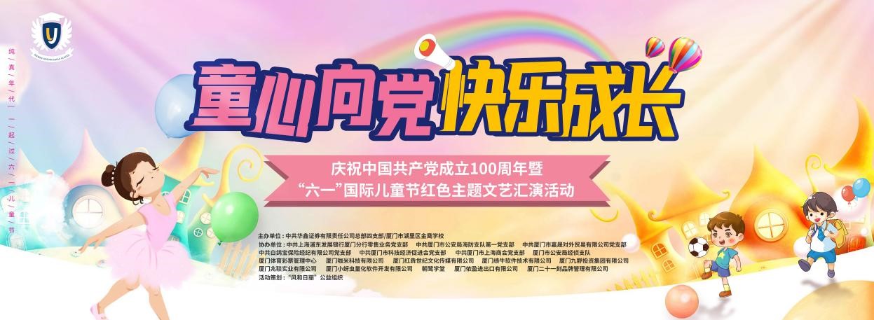 2021年6月1日,由中共华鑫证券有限责任公司总部四支部联合厦门市湖里区金鹰学校开展“童心向党快乐成长”庆祝中国共产党成立100周年暨“六一”国际儿童节红色主题文艺汇演活动圆满结束。中共白鸽宝保险经纪有限公司党支部(以下简称“白鸽宝”)作为协办单位之一,为这场意义非凡的活动奉献了自己的一份力量。