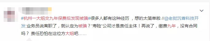 有人觉得业务员太没职业道德,为了业绩欺瞒消费者,有人觉得这事方大姐本身也有一定责任,投保前没看清楚保险合同,怎么交了9年保费后才发现不对劲。