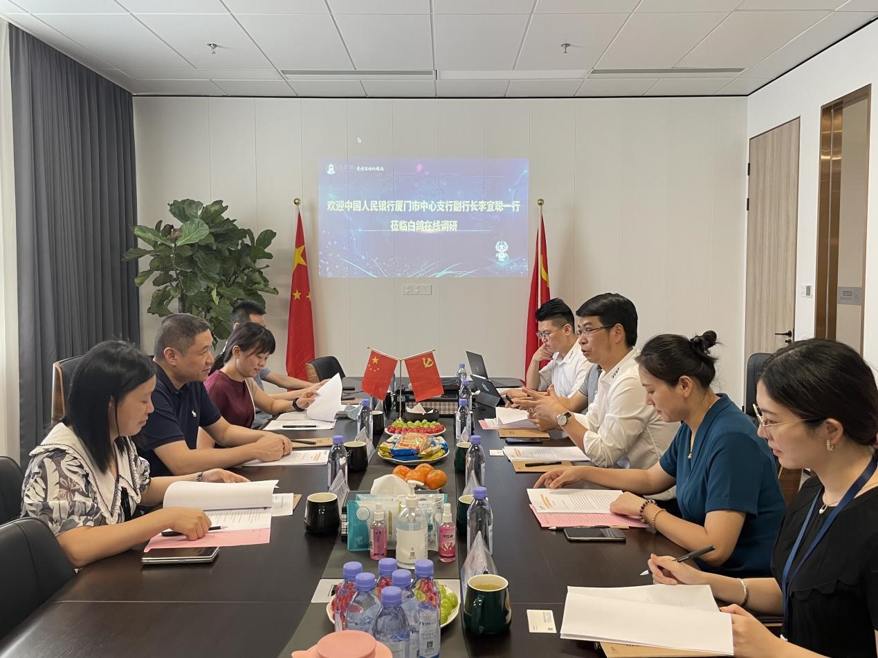 2021年8月25日,中国人民银行厦门市中心支行副行长李宜聪一行莅临位于天地金融港的白鸽在线(厦门)网络科技有限公司(以下简称“白鸽在线)调研,白鸽在线创始人、董事长兼CEO涂锦波、天地集团董事长蔡寿飞、副总经理王占忠等接待了李宜聪副行长一行人,并对他们的莅临表示了热烈欢迎。