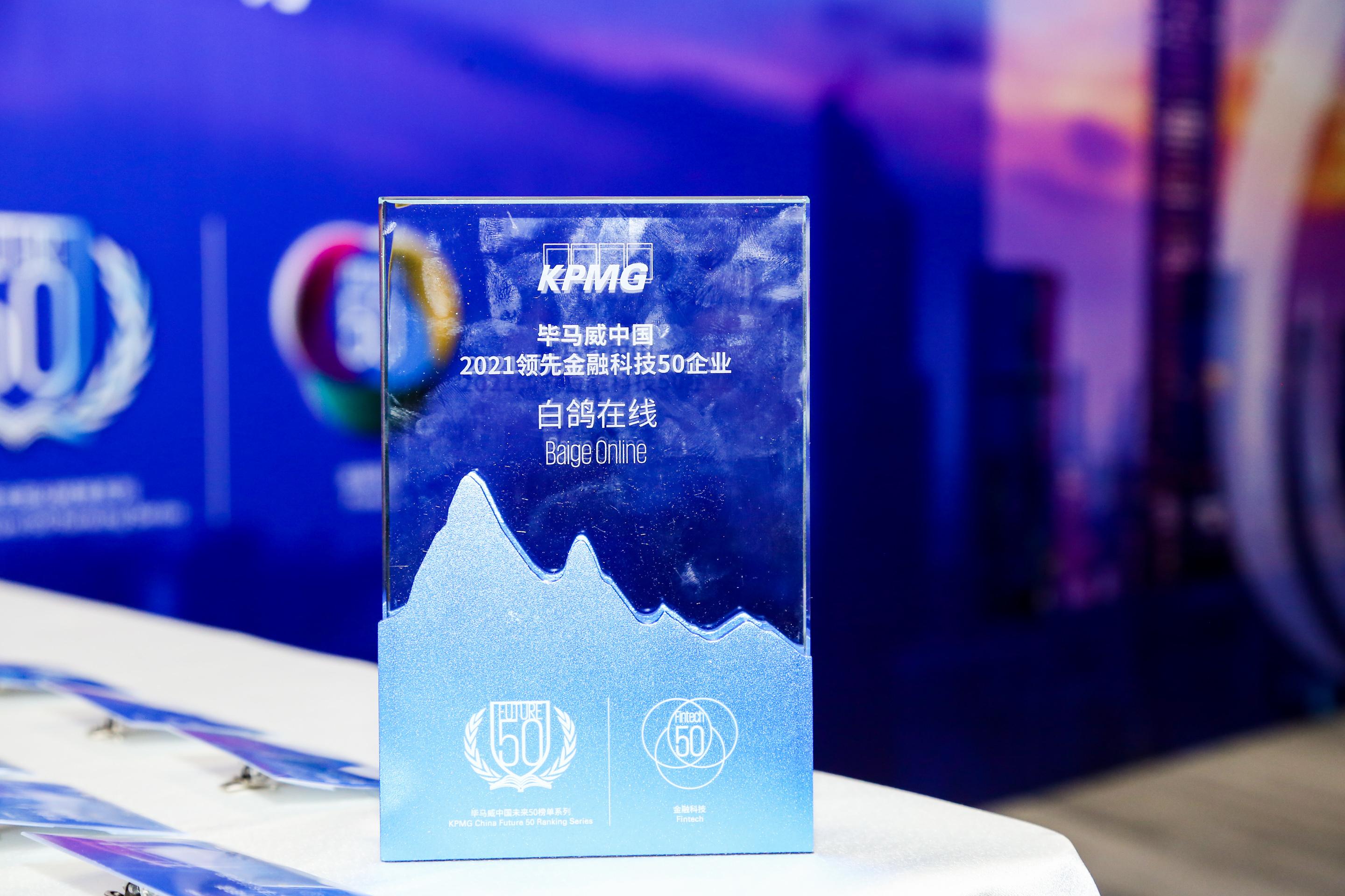 继入选艾瑞咨询“2021年中国FinTech TOP 50企业”后,白鸽在线再次传来喜讯,公司荣获2021毕马威中国领先金融科技50企业。