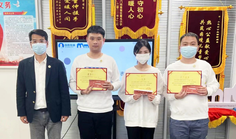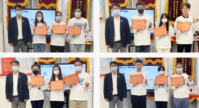 随后,白鸽在线董事长涂锦波向合格学员颁发MMRT班徽、结业证书。此次的班徽授予仪式代表着12名学员们正式成为一名合格的营销管理储备干部,未来他们将在岗位上学以致用,发光发热,为白鸽在线带来新的业务增长曲线。