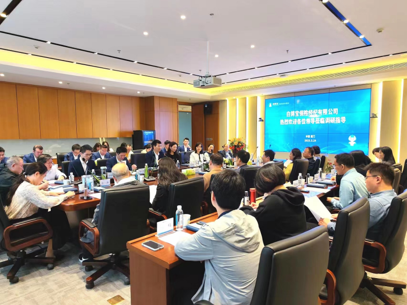 2023年3月24日上午,中国银保监会保险中介监管部一级巡视员张俊斌、银保监会保险中介监管部代理监管处处长高晓辉(二级巡视员)等领导一行,在厦门银保监局党委委员、副局长谈晨的陪同下,莅临位于白鸽天地金融(保险)科技产业园的白鸽宝保险经纪有限公司(以下简称“白鸽宝”)调研指导。部分省市银保监局中介处负责人、白鸽宝董事长涂锦波及总经理施文铮等高管陪同。