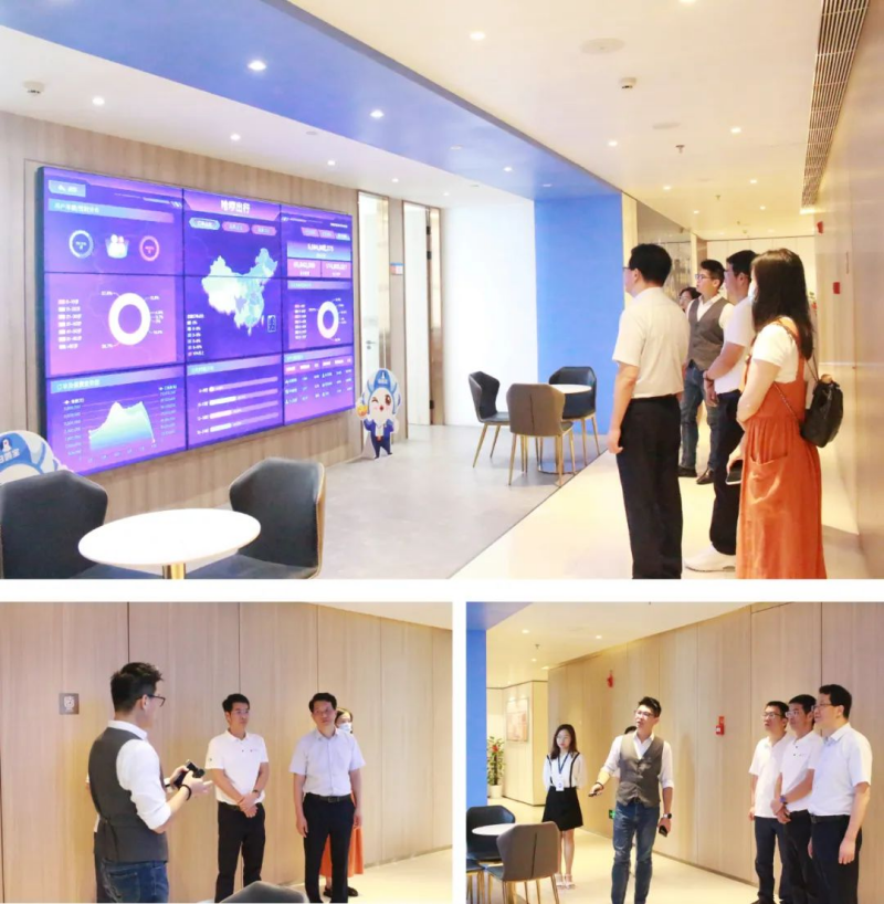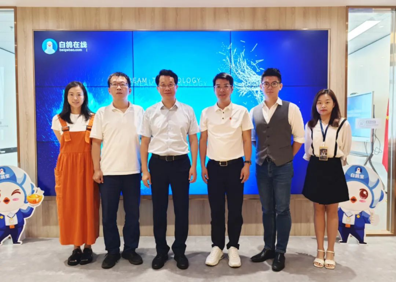 紧接着,黄奋强一行参观了白鸽在线总部,柯葳彬通过数据可视化大屏展示了白鸽“9+n”生态的规模布局、数据模型的体系构建、业务成果的转化等,使其对白鸽在线的经营发展有了直观的了解。同时,黄奋强一行还调研了白鸽的职场环境、发展历程、公益项目及数字IP等,对白鸽所展现的品牌文化表示认可和赞同。