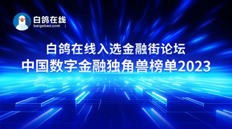 11月9日-11日,2023金融街论坛年会发布“中国数字金融独角兽榜单2023”,白鸽在线凭借“大数据风控模型”赋能数字化金融服务的持续创新成果,荣获中国数字金融独角兽企业。