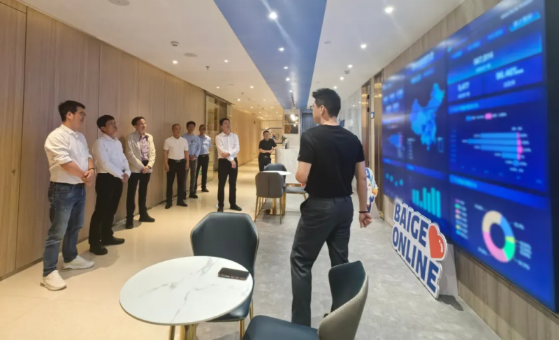 永春县领导一行首先调研了白鸽天地金融(保险)科技产业园,随后参观了白鸽在线总部,对产业园的职能定位及企业发展历程、研发产品、战略规划等有了初步了解,同时对白鸽在聚集数字资源、培育数字经济产业上发挥的作用表示赞赏。