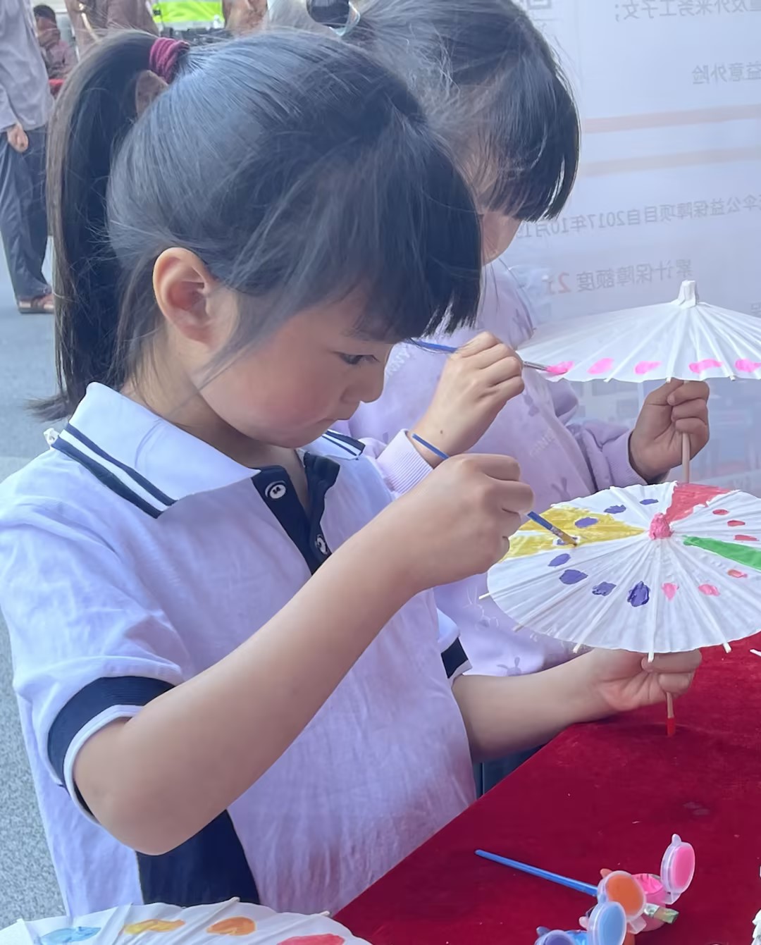 活动现场还设置了未保市集,市白鸽慈善会摊位的小花伞DIY手绘活动吸引了众多小朋友们踊跃参与。每个小朋友都发挥出了自己的创意和想象力,用色彩斑斓的画笔在纸伞上认真描绘,让每一把小花伞都独一无二、充满童趣。