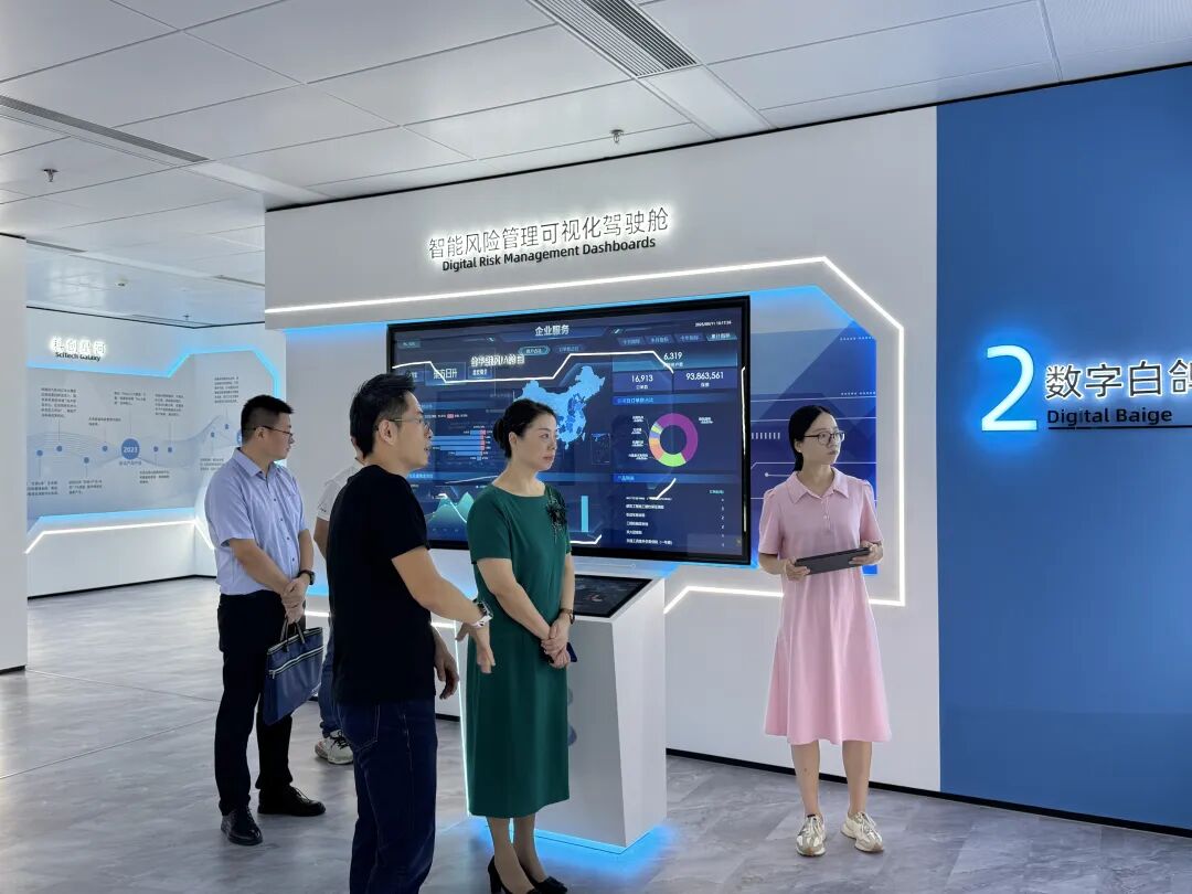 调研团一行先后参观了白鸽天地金融(保险)科技产业园及白鸽在线总部、Dove Link白鸽AI展厅,详细了解白鸽在线在金融科技平台建设、技术研发及多场景应用落地等方面的成果,重点关注其在数字经济领域的创新模式和服务体系构建。