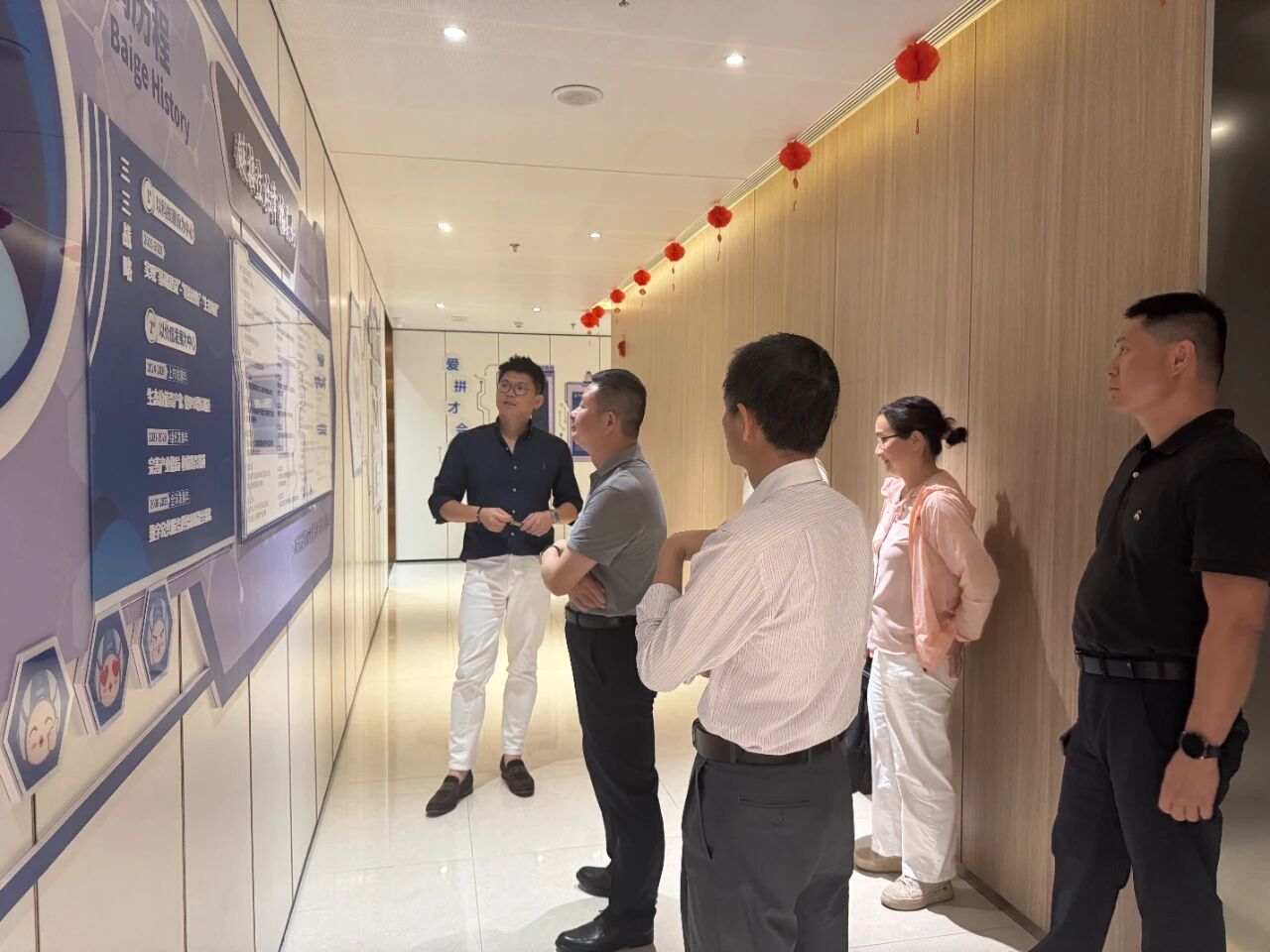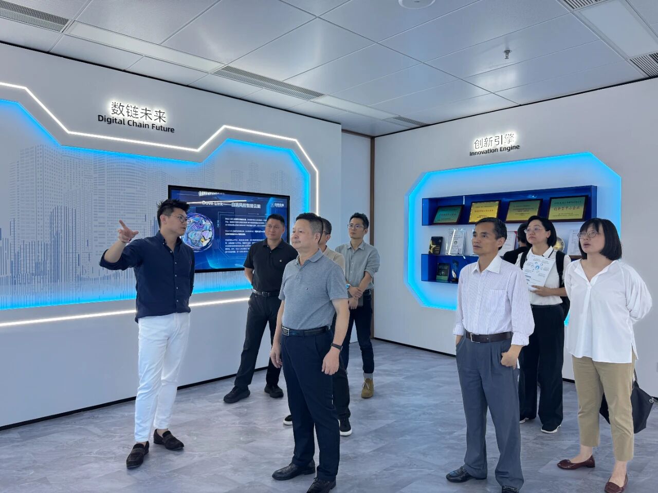 调研组一行在白鸽在线执行副总裁刘晓敏、副总裁柯葳彬的接待下,参观了公司总部企业文化墙及Dove Link白鸽AI展厅,深入了解企业在金融科技平台建设、智能风控模型研发及多场景应用落地等方面的创新实践。柯葳彬系统介绍了白鸽在线以“科技+金融+场景”为核心的战略架构,重点展示了企业在平台经济、共享经济、数字金融等新经济形态下推出的多元化风险管理解决方案与跨界协同成果。